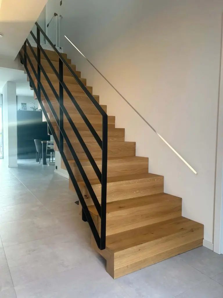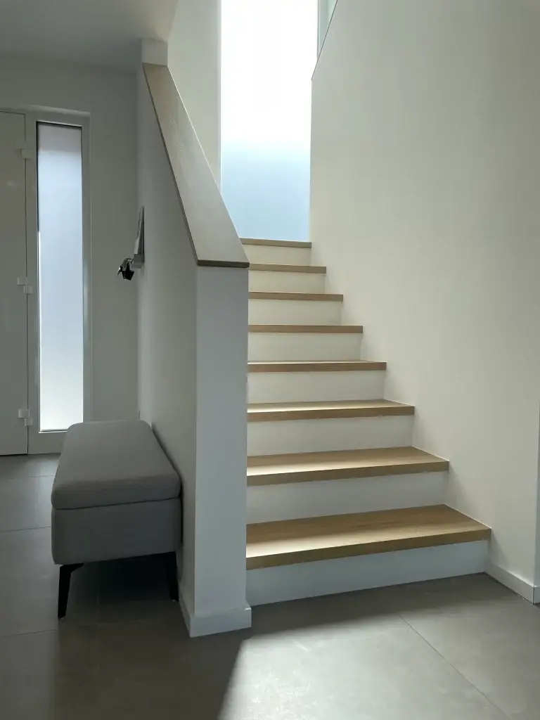 Unsere Stufen bestehen aus geprüftem Laminat oder Vinyl – abriebfest (AC4/AC5, Klasse 32–33), rutschhemmend, pflegeleicht und mit einer Schichtstoffstärke von 0,6 mm auf stabilem HDF-Träger.