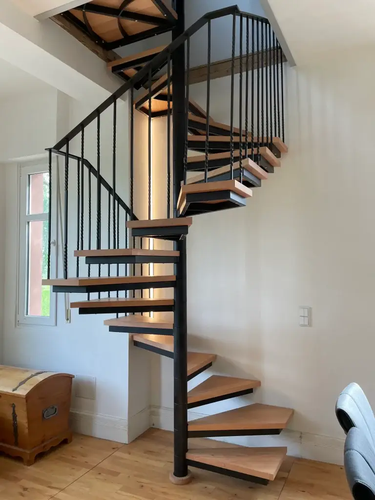 Platzsparend und markant – die Spindeltreppe setzt architektonische Akzente mit eleganter Spiralform.
